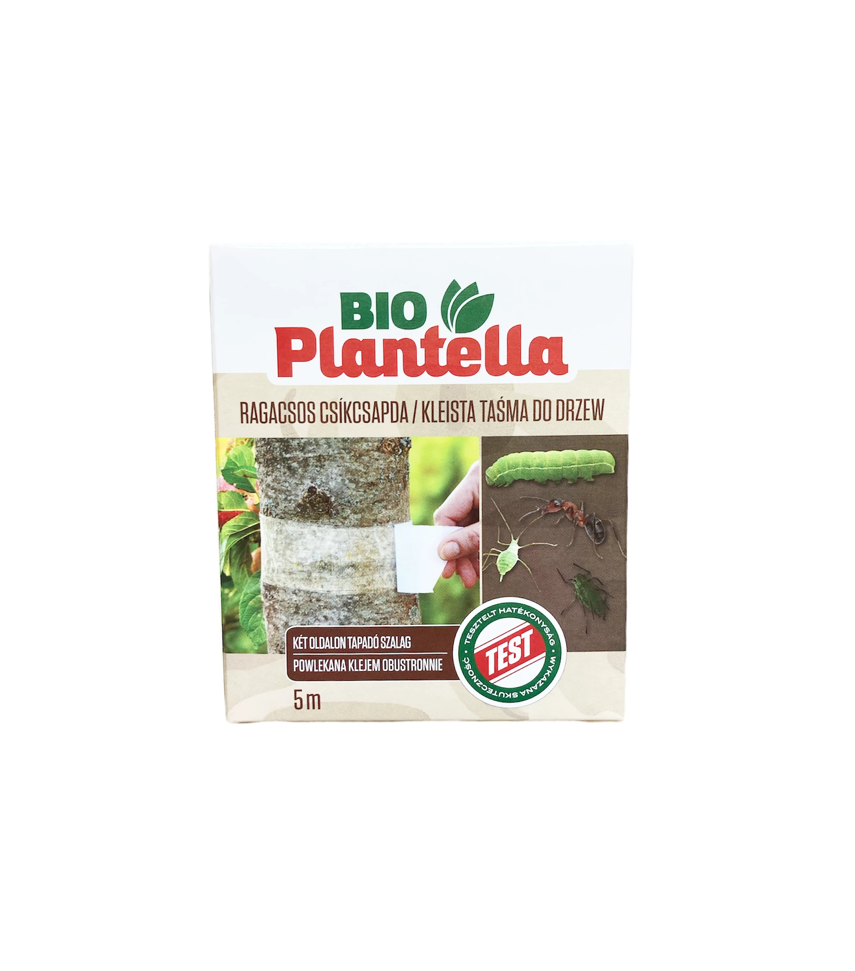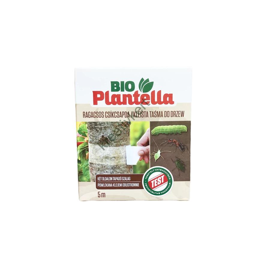 A ragasztószalag kivételesen erős és stabil ragasztót tartalmaz, vegyi hatóanyagok nélkül. 5 cm szélességben természetes akadályt jelent a lepkék hernyóinak, levéltetveknek, hangyáknak és más kártevőknek, amelyek a fa törzsére másznak, és kárt okoznak.1 tekercs 5 méter ragasztószalagot tartalmaz.