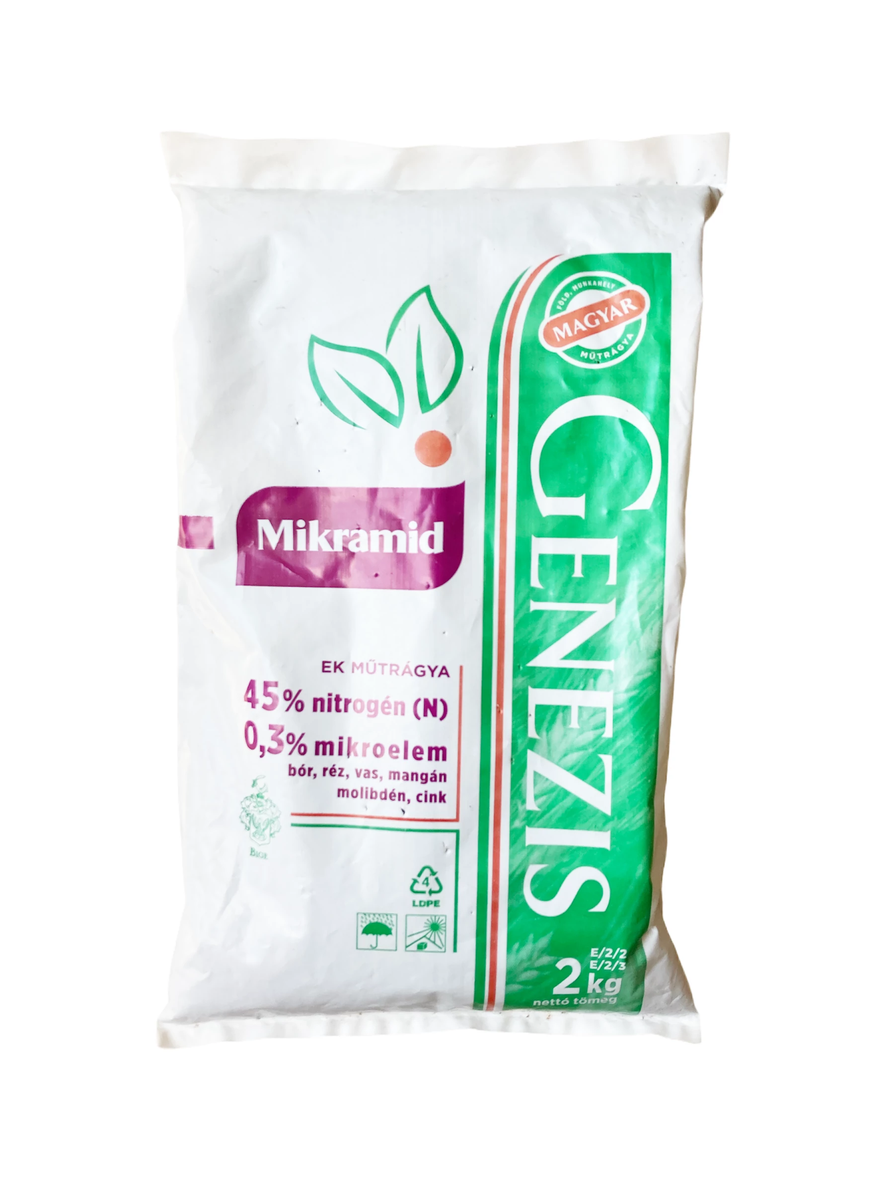 EK-műtrágya-előírások szerint 45% nitrogén (N), B (bór), Cu (réz), Fe (vas), Mn (mangán), Mo (molibdén), Zn (cink)