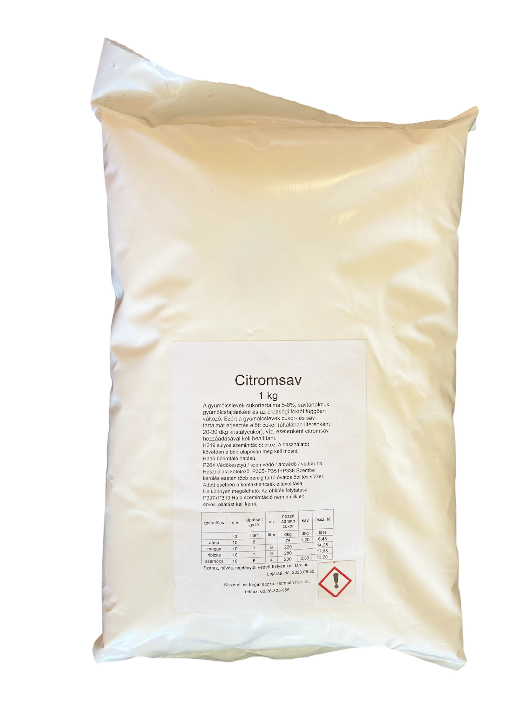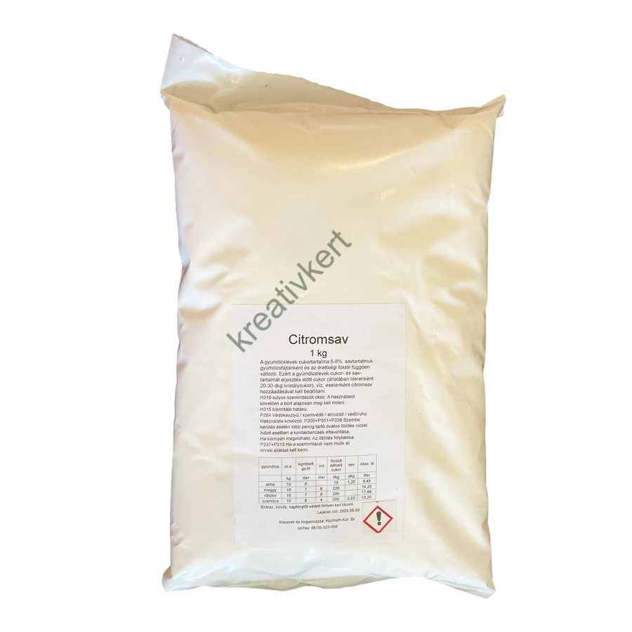 Adagolás: Gyümölcs feldolgozásánál, savanyúság készítésénél az ízlés szerinti citromsavat vízben feloldjuk és a készítményhez adjuk. Bor készítésénél a kimért mennyiséget oldja fel mustban vagy borban és adagolja a kezelendő tételhez, majd jól keverje el. Borászati felhasználás előtt l aborvizsgálat szükséges és a Bortörvény előírásait kell betartani.