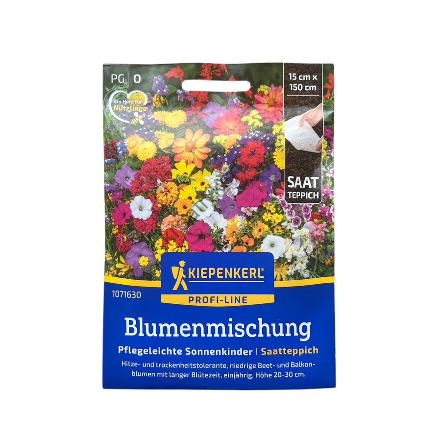 A talaj legyen gyommentes és aprómorzsás. Vágjuk a vetőmagszőnyeget méretre és fektessük széthajtogatva a talajra. Nedvesítsük be, fedjük be vékonyan földdel, nyomkodjuk le, majd ismét alaposan öntözzük meg. A különböző magok eltérő időben csíráznak. Tartsuk folyamatosan nedvesen.