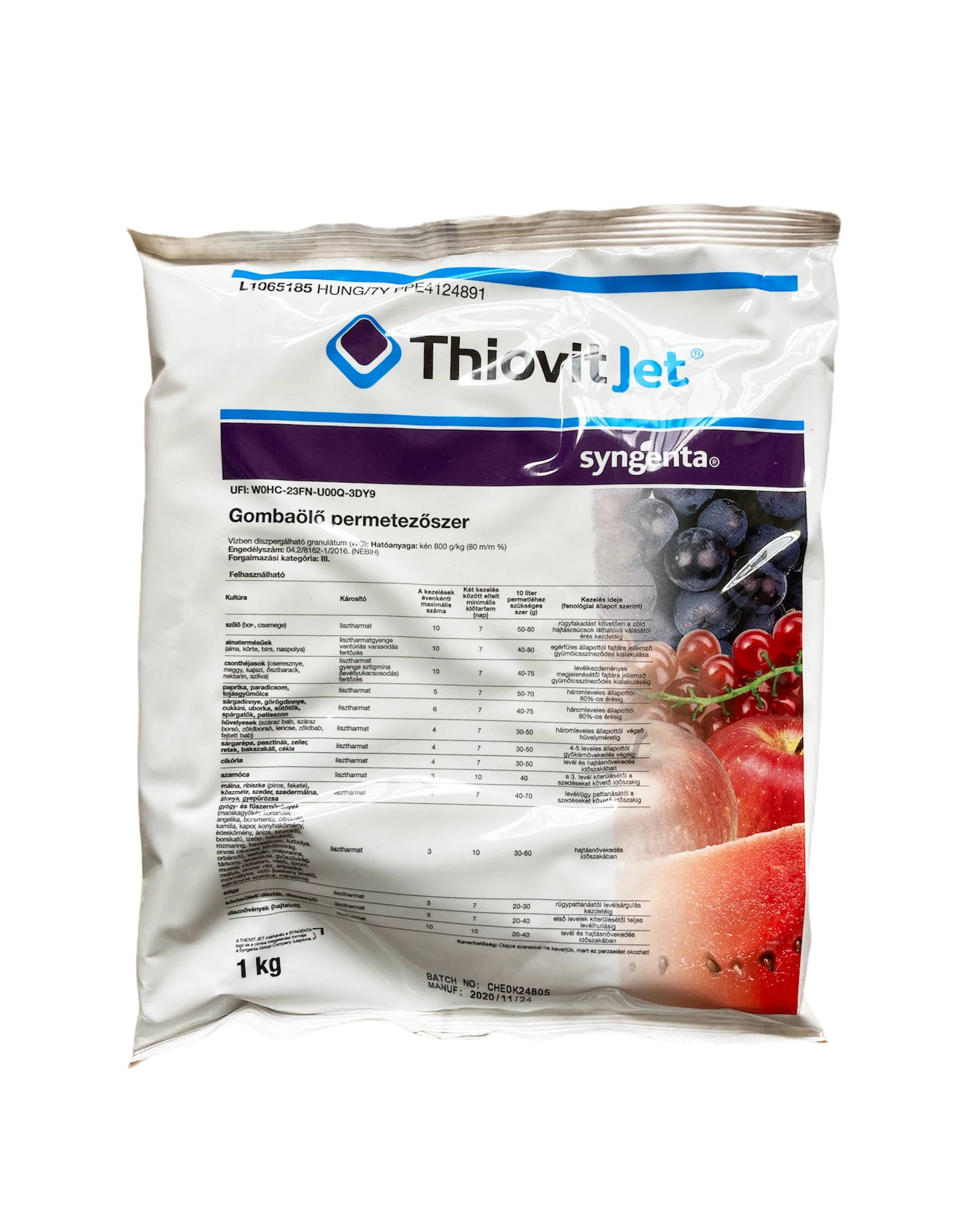 A Thiovit Jet modern kénkészítmény, amely könnyen szuszpendálódik, a permetlében a kisebb és nagyobb kénszemcsék aránya optimális. Ennek következtében kitűnő a hatékonysága, a kultúrnövényt nem perzseli.